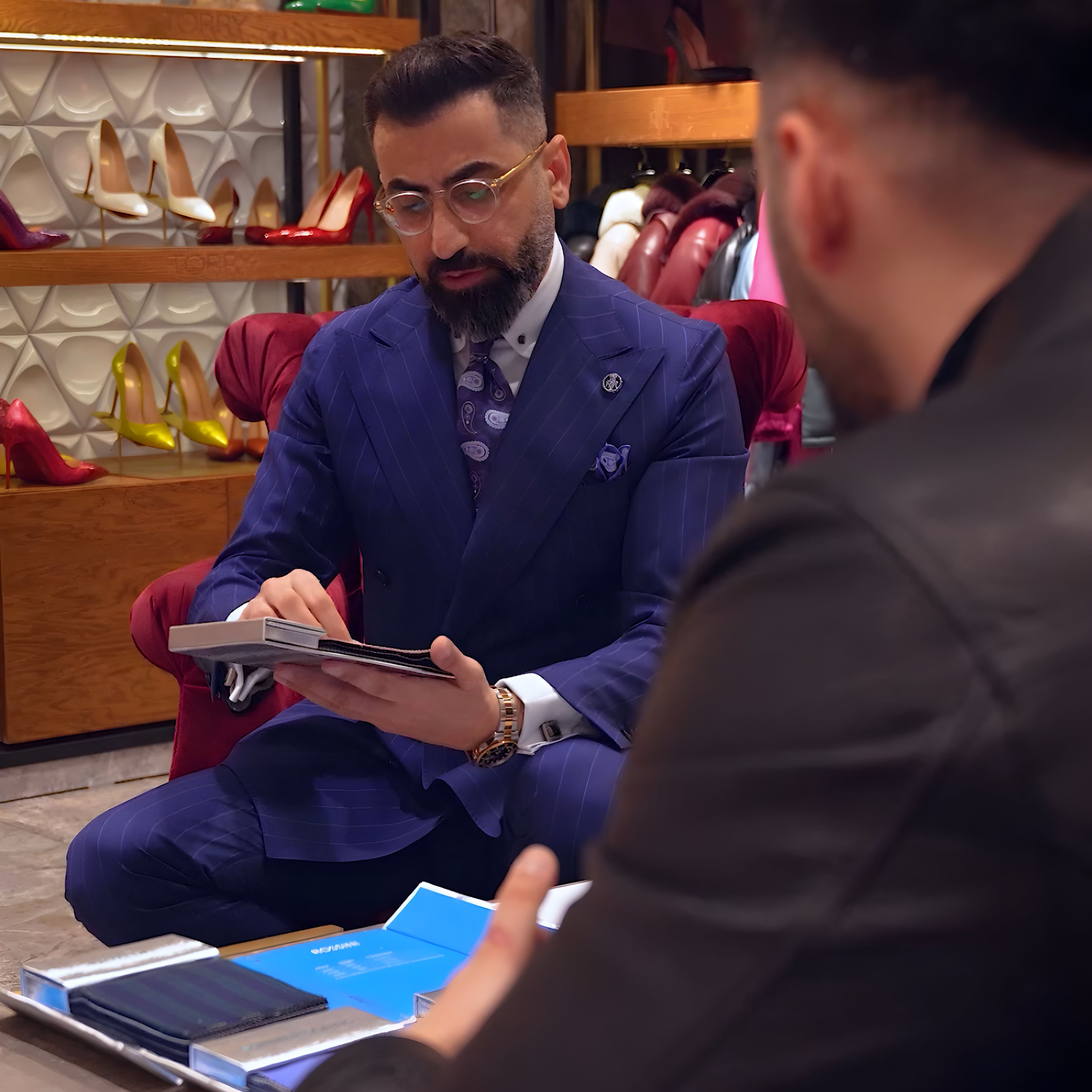 Lépj be egyik üzletünkbe, és tervezd meg azt a öltönyt, amely elmeséli a történetedet. A szövettől az utolsó varrásig minden részletet te választasz, szakértő szabóink útmutatásával. Foglald le személyes találkozód, és élvezd az olasz kézművesség csúcsát.